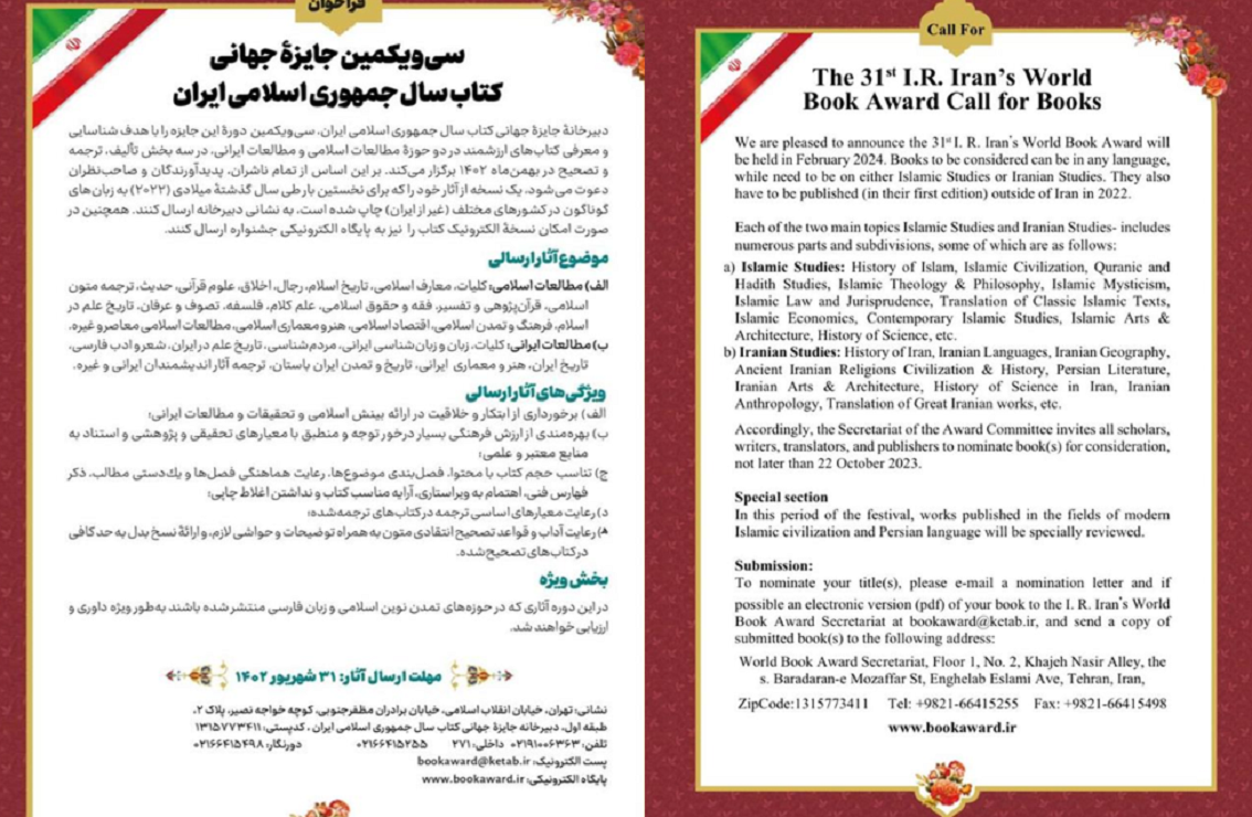 فراخوان جایزه جهانی کتاب سال جمهوری اسلامی ایران